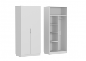 Наполнение: Внутри шкафа располагаются полки и плательный отсек с одежной штангой.